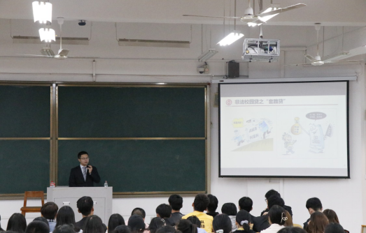 为提高大学生防诈骗意识,降低大学中诈骗案件发案率,进而给大学生创造一个诚信和谐、安全放心的学校生活环境。3月25日,我校邀请中国银行河南支行走进学校,开展了防诈骗金融知识讲座,商学院学子纷纷参与到此次讲座当中。