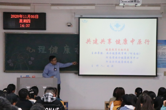 为进一步加强学生的心理健康教育,丰富心理健康知识,提高学生心理自我调适能力,更好的投入学习和生活。11月5日下午,我院在1207教室组织开展了“青春正向上·扬帆再起航”心理健康教育讲座,2020级各班学生代表一百余人参加并聆听了本次讲座,讲座邀请河南省安全健康教育中心刘源老师主讲。