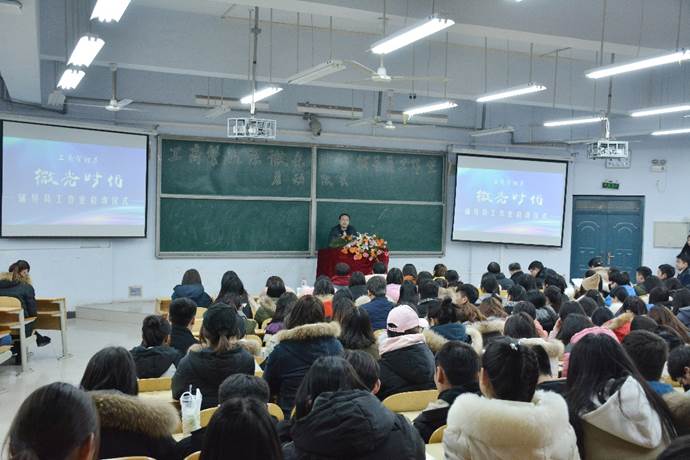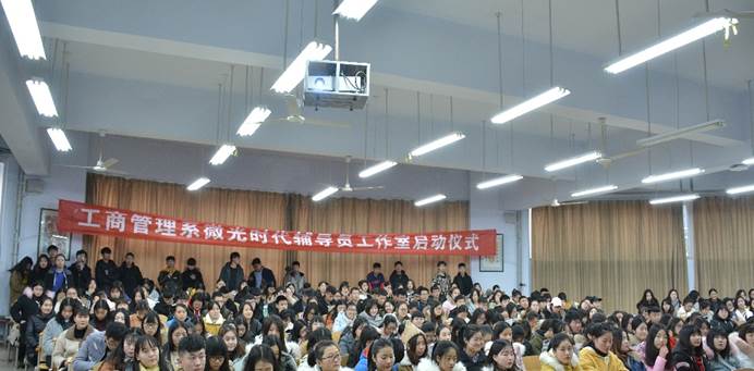 1月11日下午,工商管理系在教学楼1101举办了“微光时代”辅导员工作室启动仪式,学工部副处长鲁东,工商管理系副书记杜馨、全体辅导员和400余名师生共同参加了启动仪式。