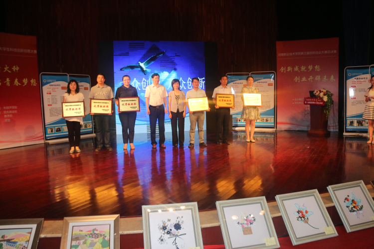 活动现场同时还展出了科技开发处举办的首届大学生科技创新创意大赛部分获奖作品。我系马华举的“小马创意营销策划团”项目获得一等奖,精彩呈现了我院大学生的科技创新水平和锐意进取的精神风貌。