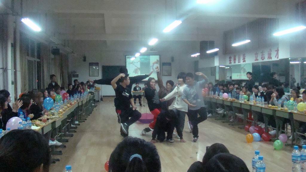民族舞《蓝色的蒙古高原》拉开了整场演出的序幕,接下来的小品《火车上的故事》、《机器人趣事》、《新白蛇传》以幽默风趣的表演迎来了观众的阵阵欢呼。礼仪《水韵》、歌曲《亲爱的那不是爱情》、模特《动感》等几个不同风格的作品,让如潮的掌声一次次响起。让观众记忆犹新的是,礼仪《水韵》,模特《动感》两个作品,漂亮的女孩和帅气的男生,在寒冷的晚上依然也能穿着单薄的演出服,如此敬业的演出精神让同学们感动。值得一提的是,舞蹈拉丁的表演者在出现突发事件--音乐伴奏突然停止的情况下依然能随机应变,齐声喊拍把舞蹈坚持跳完。而街舞的强大阵容,更是掀起了晚会的高潮。