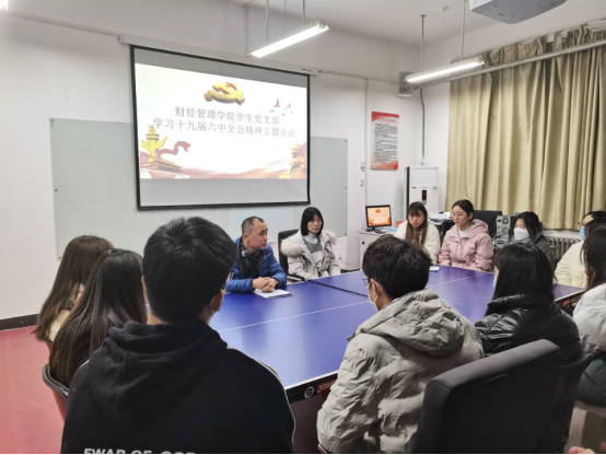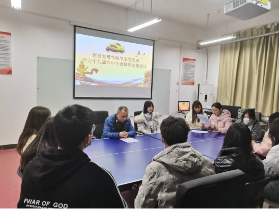 为深入学习贯彻党的十九届六中全会精神,进一步激励支部党员不忘初心,砥砺前行,2021年12月16日,财经管理学院学生党支部在行政楼518召开支部大会,专题学习了党的十九届六中全会精神。会议由支部书记张文龙主持。