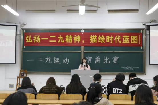 为深入开展党史学习教育,增强学生对历史事件的认识,培养学生的爱国情怀,财经管理学院学生党支部于2021年12月9号在1201教室举行了纪念“一二·九” 运动演讲比赛。
