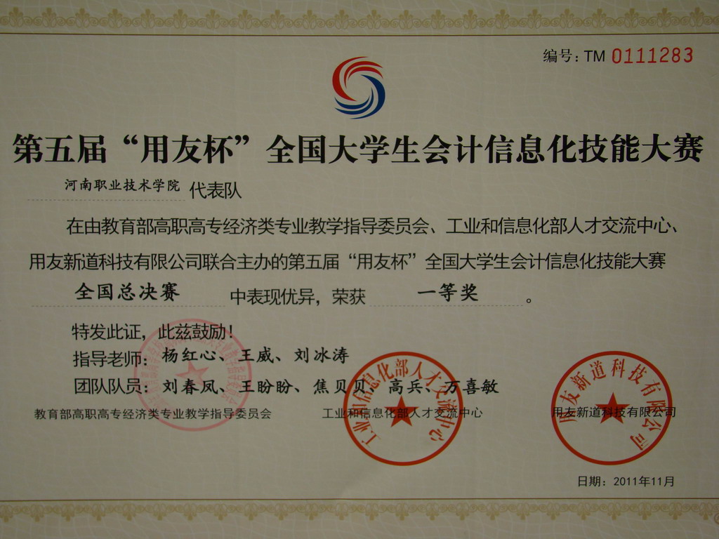 上一条:第八届“挑战杯”河南省大学生创业计划竞赛金奖 下一条:首届全国高职高专英语写作大赛河南赛区选拔赛一等奖