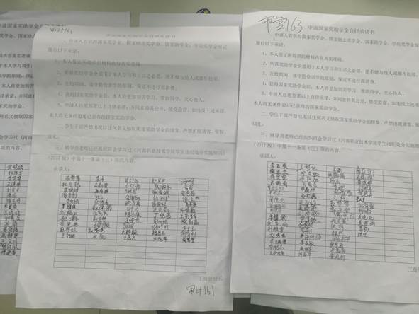 3.开展“诚信教育签名活动”。商学院开展诚信签名活动,号召大家诚信做人,诚信面对生活中的人和事。教育学生认真研读学院文件:对于侵占或抽取学生奖助学金、困难学生补助、勤工助学补助、助学贷款者,除要求全额退还外,给予记过及以上处分;金额较大或情节严重者,给予开除学籍处分;屡次违反者,给予开除学籍处分。