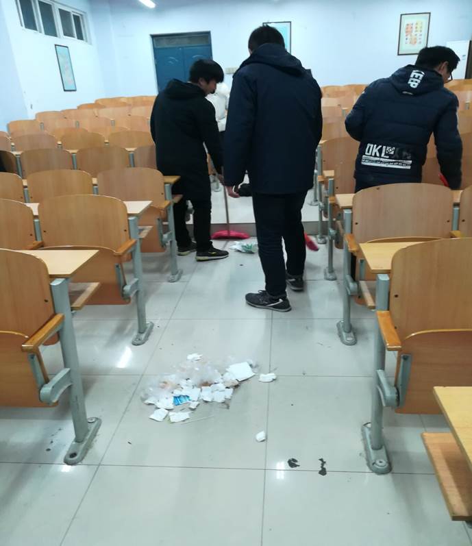 2.我院志愿者小组成员各自分工明确,把我们的教室、值班室、办公楼、实训楼以及校园打扫得干干净净,完全响应了学院的号召。
