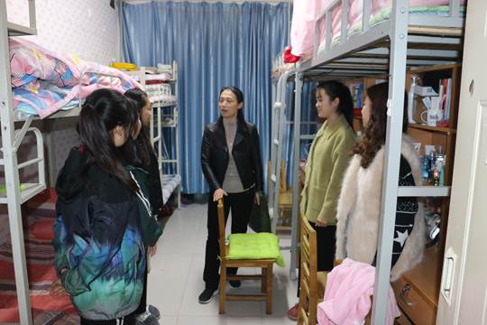 根据校党委关于副处级以上领导干部联系班级制度“六个一”工程的统一部署,结合商学院领导干部联系班级制度实施方案的统一要求,2018年11月15日17时,基建处处长曹和平老师、发展规划处处长刘岩老师以及商学院全体领导干部走进商学院学生寝室,了解学生的思想动态,在服务引导中加强思想教育,把解决思想问题与解决实际困难结合起来,助力学生成长成才。