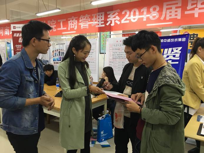 据悉,在本届双选会是由我院跟郑东新区如意湖办事处联合举办,当天共吸引来自全国的316家企业,为2018届毕业生提供万余个实习和就业岗位,而且大部分用人单位所给出的起薪在3000元到5000元,相比去年稳中有升,学生满意度进一步提高;截至11月2日21:00点,工商管理系已有近70%的毕业生初步确定了实习和就业意向。目前,后续的面试工作正在规范、有序进行。