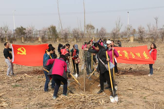 阳春三月,万象更新。3月24日下午,工商管理系党总支组织全系教师到雁鸣湖开展“种下一棵树 增添一抹绿”义务植树造林活动。