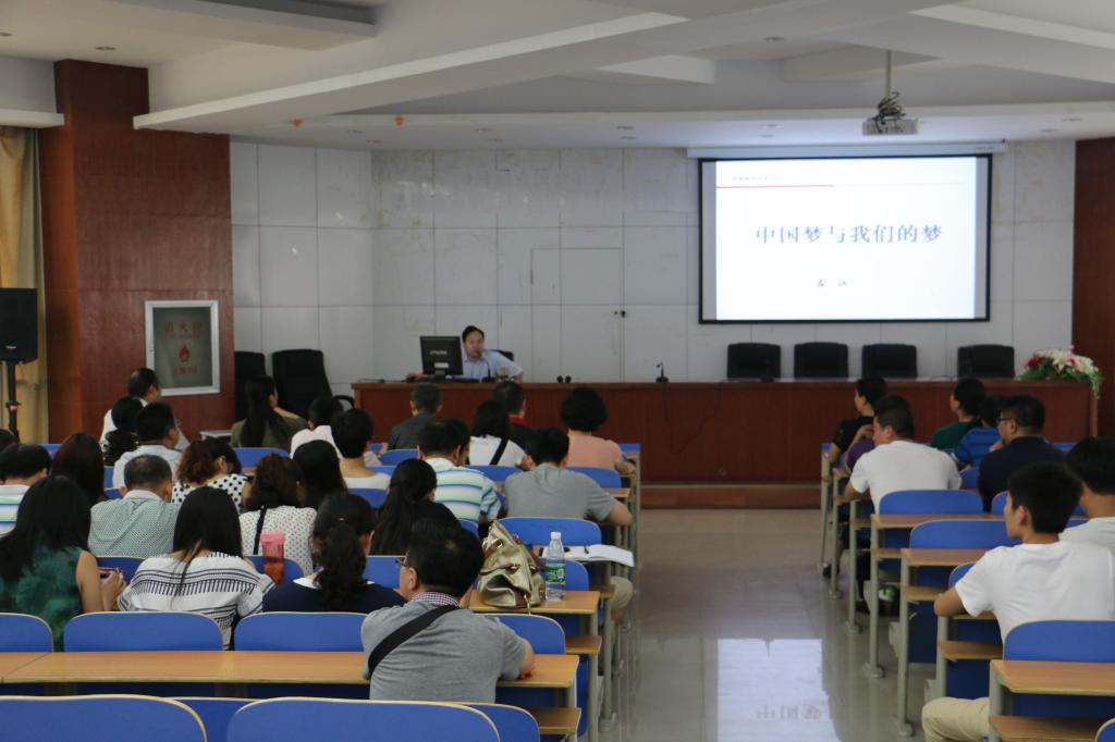 6月13日下午,副院长占江同志以“中国梦与我们的梦”为主题,为党政办公室、招生就业处、保卫处及工商管理系60余名师生党员讲“两学一做”专题党课。