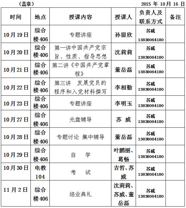 工商管理系业余党校第25期党课培训时间为2015年10月19日至11月2日。