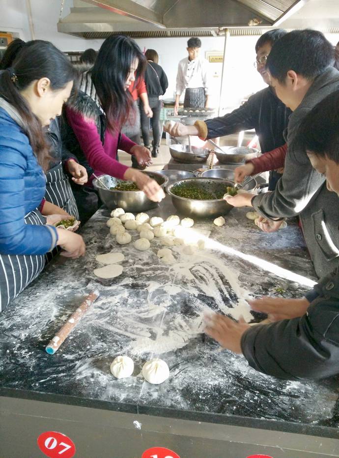 本次活动共设“包包子”和“烤桃酥”两个项目,烹饪食品系闫海涛老师首先就两个项目的操作流程和注意事项,进行了认真讲解和耐心演示。在随后的制作过程中,全体教师都积极参与,认真投入,他们分成若干团队,分工合作,和面、擀面片、拌馅、制作,配合默契,第一个不好看,再做第二个、第三个。时间不知不觉在欢声笑语中流淌,一个个形态各异,精致好看的作品在一双双巧手中成形。最后,经过20分钟的焦急等待,大家用心制作的包子和桃酥出炉了,品着美味的成果,讨论着精致的作品,回想着有趣的制作过程,每个人的脸上都挂满了收获的喜悦。本次活动丰富了教职工业余生活,加强了教职工之间的沟通交流,增强了团队合作意识。
