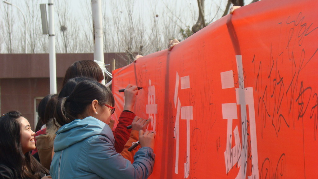 为了倡导厉行节约,拒绝舌尖上的浪费,我系学生会于3月13日中午12:10,在为天食府门前举行了“光盘”行动签名仪式,数百名师生参加并签字。