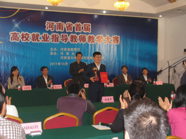 10月18日,河南省首届高校就业指导教师教学大赛决赛,在河南大学圆满落下帷幕。我系教师温宗和,比赛总成绩第一,获特等奖。