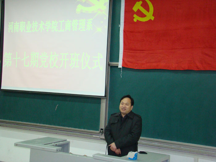 11月29日晚,工商管理系党校第十七期党课开学典礼在电教202教室隆重举行,副院长占江出席并发表重要讲话。