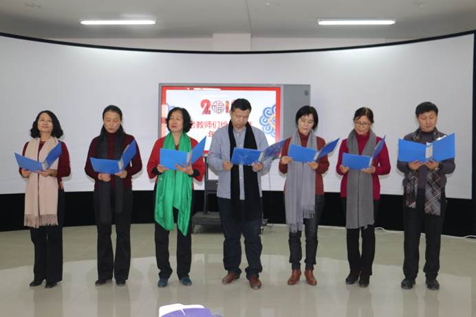 紧接着,老教师团队首先深情为大家朗诵了散文诗《从教岁月》,表达对从教感悟和对教育的理解,拉开了联欢会的帷幕;随后,老师们为大家带来了精心排练的舞蹈《广播体操》、豫剧《包青天》、诗朗诵《岁月》和歌舞串烧等节目,现场气氛热烈,掌声连连。最后,联欢会在歌曲串烧《青春之歌》青春、热烈、向上的氛围中圆满落下帷幕。