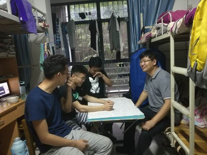在学生党员的介绍引领下,党员教师进入学生宿舍与同学们亲切交谈。其中李相勤书记为同学们分析了本专业的发展形势,提醒同学们不要偏科,课余时间多多参加创新项目,逐渐明确个人发展方向。杜馨书记希望同学们在学习过程中保持良好的心态,不要被繁重的学习任务所影响,还询问了同学们在学习生活上的困惑,详细解答了同学们提出的问题。其他老师也结合自己的专业知识、教学经验及生活阅历等,对同学们进行细致的指导和关怀。