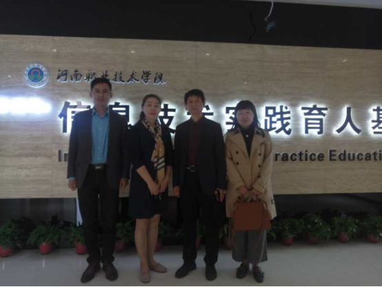10月16日下午,河南牧业经济学院电商与物流学院党总支书记宋之苓、院长曹献存等一行三人来我校参观。商学院院长万久玲和信息工程学院院长张滨燕等相关领导陪同并就实训基地建设进行了交流。