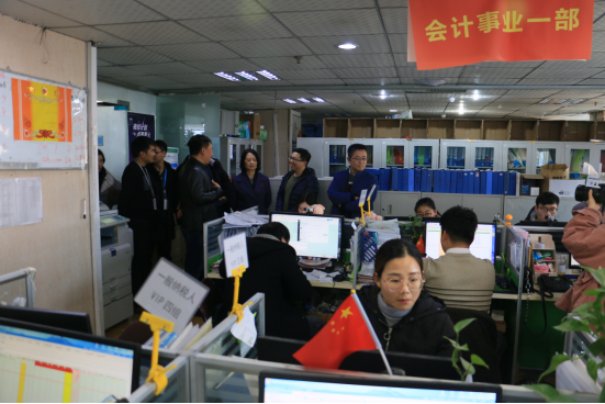 我院教师抵达公司后,受到热情接待。刘向阳董事长亲自带领教师们参观了公司“会计工厂”,介绍了不同的业务模块区。随后,在会议室,公司朱总监展示了近年来全国及河南企业发展的大数据,阐述了代理记账行业的现状与前景,就公司特色软件“慧算账”进行了讲解及实操。最后与会双方就会计行业变革发展趋势以及产业需求培养复合型人才的标准、校企人才共育平台建设等方面进行了充分研讨交流。