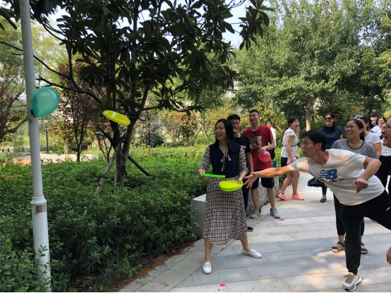 9月10日下午,商学院在我校专家楼西侧花园活动场地内举行了庆祝教师节飞盘传递比赛活动。