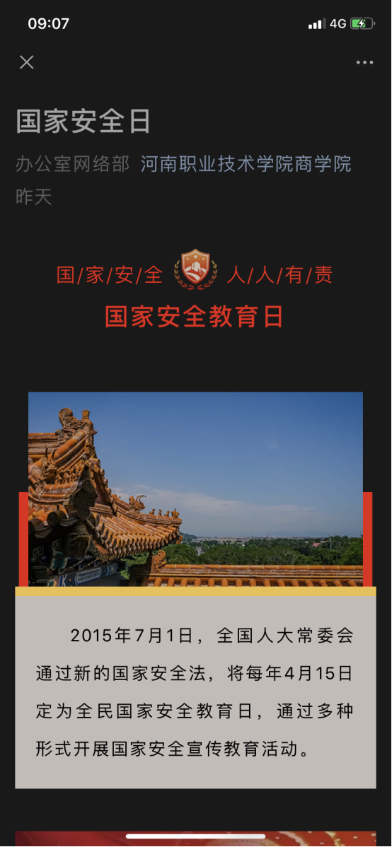 根据《河南省反恐办关于组织开展2021年全民国家安全教育日反恐怖宣传教育活动的通知》(豫反恐办【2021】20号)精神,按照《河南职业技术学院开展“反恐怖宣传教育进校园”深化提升年活动方案》具体安排,商学院与于4月14日至19日组织了学生专题教育活动。