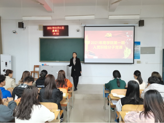 为提高入党积极分子的政治思想素质和理论水平,端正入党动机,把好党员“入口关”,确保党员发展质量,2021年3月31日-4月15日,商学院党总支举办入党积极分子党课培训班,113名学生入党积极分子参加了此次培训。