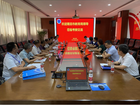 6月28日下午,莆田市教育局二级调研员王义勇,深圳市卫国教育有限公司总经理郑振华,莆田职业技术学校校长杨俊明等一行8人来我校考察交流。学校副校长肖珑、发展规划处处长刘岩、教务处处长李小强及商学院领导班子成员参加了交流座谈会。