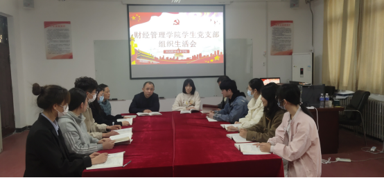 2022年3月3日,财经管理学院学生党支部在行政楼518召开党史学习教育专题组织生活会。本次会议由学生党支部张文龙书记主持,学生党支部全体党员出席。