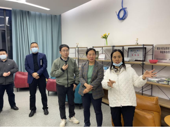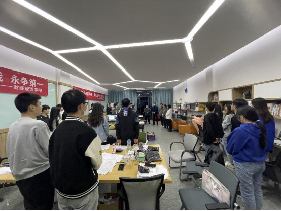 4月4日晚上,财经管理学院领导班子陪同校党委副书记田华慰问正在全力备赛2022 年“学创杯”全国大学生创业综合模拟大赛的学生和指导老师。