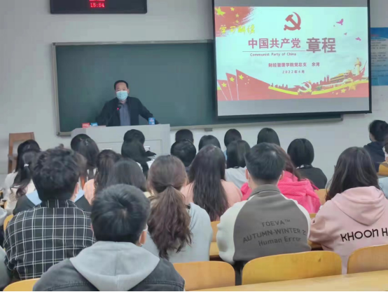 为提高入党积极分子的党性修养,增强入党积极分子的思想认识,发挥入党积极分子的先锋模范作用,财经管理学院于2022年4月6日至4月20日,在明德楼2107教室举办了入党积极分子培训班。财经管理学院党总支书记吴玉刚、副书记余湾、学生支部书记张文龙,以及马克思主义学院党总支书记马金伟参与授课。