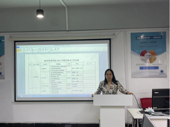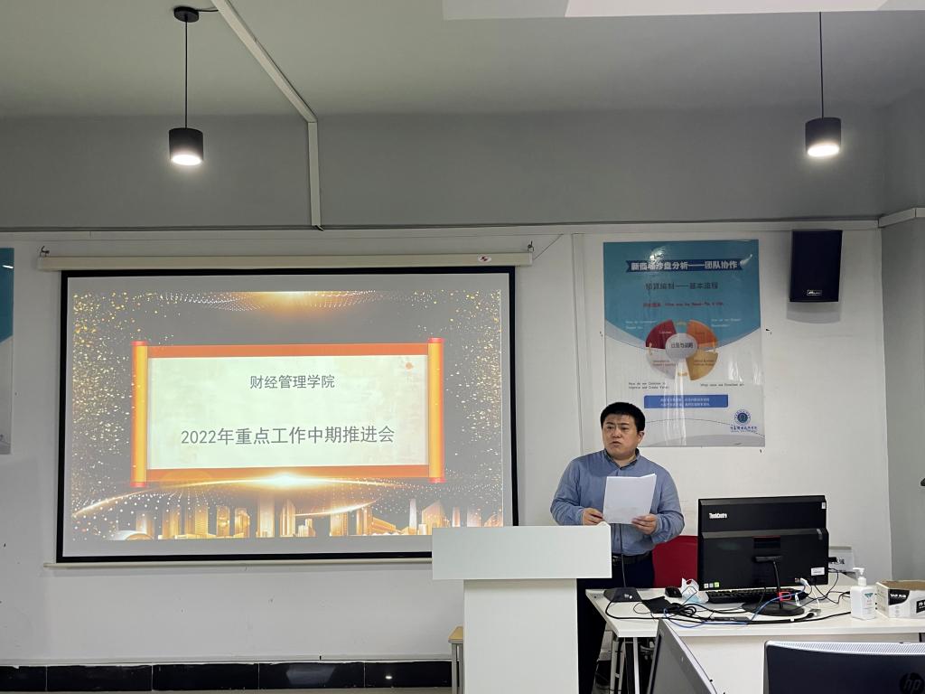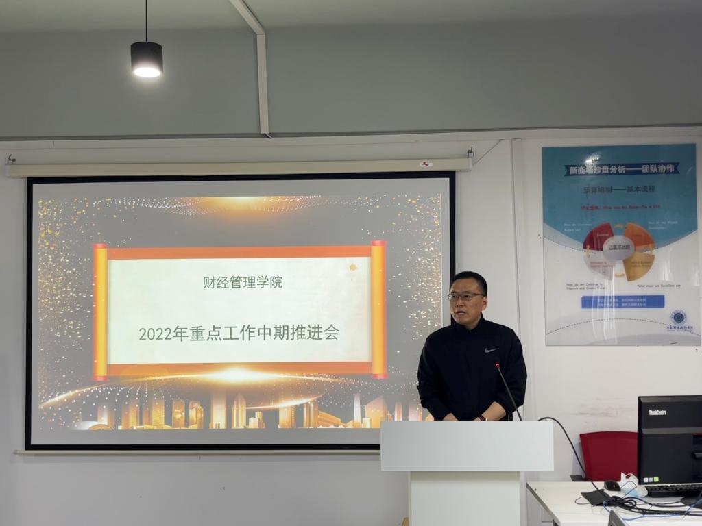 5月19日,财经管理学院院长窦雪霞、党总支书记吴玉刚在笃行楼406会议室主持召开2022年重点工作中期推进会,我院全体教职工参加了会议。