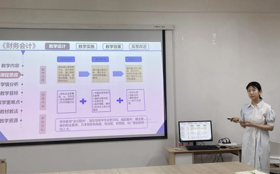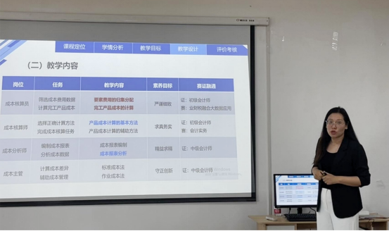 在专业教师说课程环节,李嘉晖、武萌等五位教师分别讲说了《新媒体运营》《纳税实务》《审计理论与实务》《财务会计》《成本核算与管理》五门课程,包括课程定位、教学资源、课程内容、教学实施、课程特色、课程反思等。四位点评专家对我院教师教学水平和教学质量给予积极评价,并从教材选取、教法手段、激发学生学习兴趣、学生学法、教学过程、教学反思、特色创新、板书设计、借鉴教学能力大赛经验等提出指导意见。