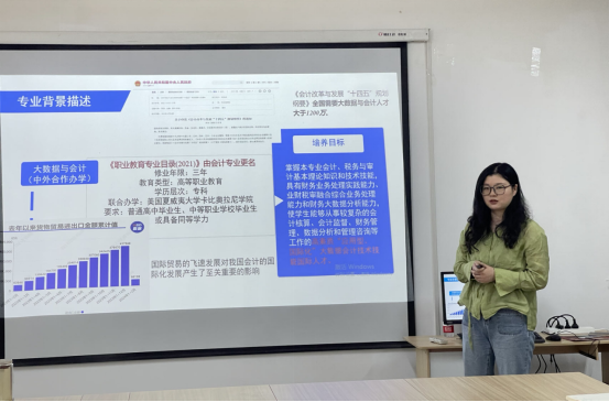 在教研室主任说专业环节,大数据与审计教研室、工商企业管理教研室、大数据与会计(中外合作办学)三位教研室主任围绕“服需、培特、创优”分别就专业整体建设情况、专业特色建设思路和专业未来发展规划进行详细剖析。四位点评专家对三个专业发展给予充分肯定,并就优化专业布局、强化各专业核心竞争力和特色优势、擦亮专业办学品牌、服务市场需求、结合新增专业、校企合作等方面提出指导意见。