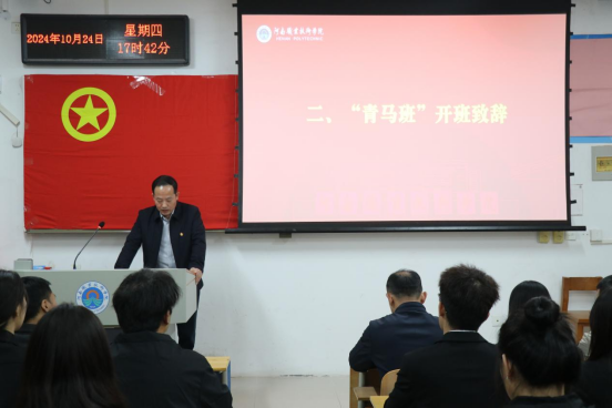 为深入学习贯彻习近平新时代中国特色社会主义思想和党的二十届三中全会精神,着力为党培养和输送青年政治骨干,塑造一批素质高、能力强、肯实干的团学干队伍,10月24日,财经管理学院在2105教室举行第六期“青年马克思主义者培养工程”培养班开班仪式暨开班第一课。学院党总支书记马金伟、副书记余湾、团总支书记张文龙、专职辅导员及30名青马学员参加了开班仪式。本次开班仪式由张文龙主持。