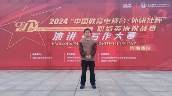 10月26日至27日,“中国教育电视台·外研社杯”职场英语挑战赛演讲·写作大赛(河南赛区)在鹤壁举行。我院企管234班学生卫己元以扎实的功底,经过激烈的角逐,荣获写作大赛(河南赛区)一等奖。