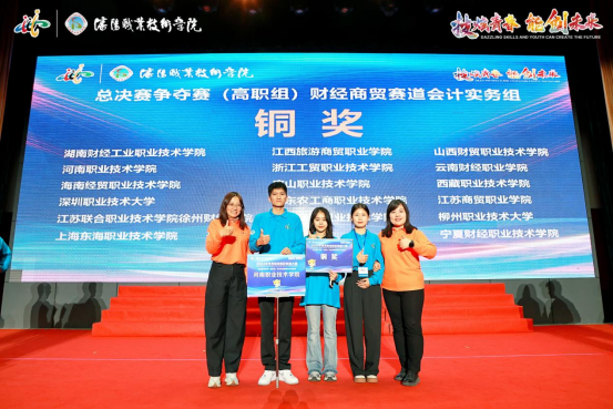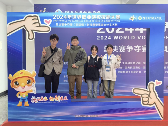 2024年10月27日至29日,备受瞩目的世界职业院校技能大赛总决赛在沈阳隆重举行。此次大赛的财经商贸赛道会计实务赛项吸引了来自全国各地的63支精英队伍同场竞技,场面激烈而精彩。我校财经管理学院派出的代表队,在支慧、赵雅慧两位老师的精心指导下,凭借李晶、马静怡、任志远、胡俊鹏四位同学的出色表现和稳定发挥,成功斩获了铜奖,为学校赢得了荣誉。