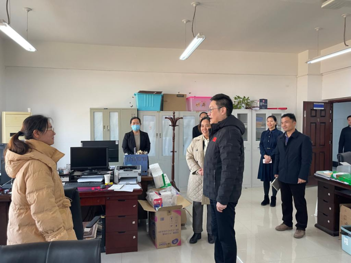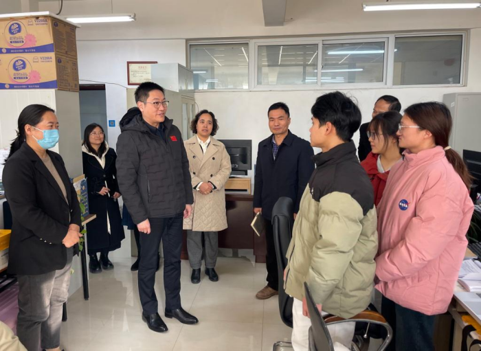 调研中,厉励深入学院各教研室与办公室,每到一处都与师生亲切交谈,详细询问大家工作、学习和生活情况,并向大家致以新年的诚挚问候和美好祝福。