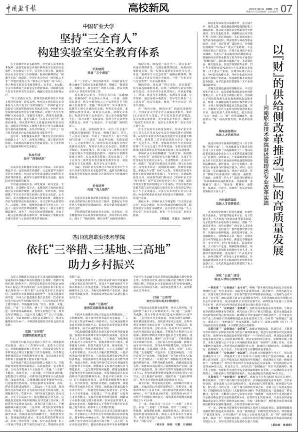 近日,河南职业技术学院财经管理学院在教育教学改革方面取得显著成效,其“业财融合”的数智化发展模式备受关注,相关成果被“中国教育报”转载报道。