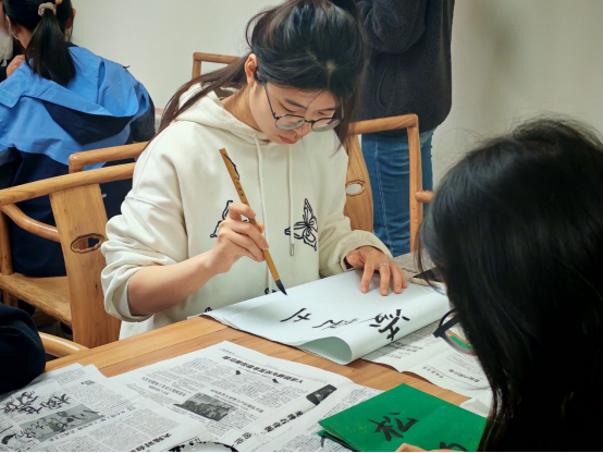 活动现场,墨香四溢,笔墨纸砚一应俱全。同学们围坐在一起,或凝神静气,思索着每一笔的起承转合;或挥毫泼墨,在宣纸上尽情挥洒才情。大家悉心交流书写心得,从横竖撇捺中感受书法的独特魅力与韵味,将文字之美内化于心、外化于形。活动结束后,同学们纷纷表示受益匪浅。一位同学感慨道:“通过这次活动,我对书法有了全新的认识,每一笔每一划都蕴含着无尽的哲理和情感。”
