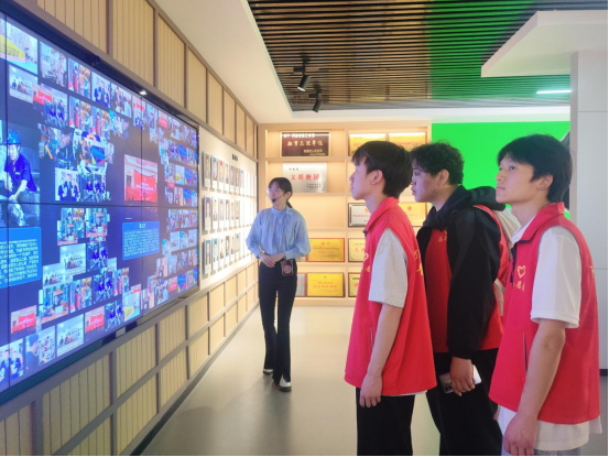 走进校史馆,泛黄的文献资料、珍贵的实物展品与多媒体展示相结合,立体呈现了学校自创立以来从艰苦创业到跨越发展的奋进历程。讲解员结合历史图片、实物展品与多媒体资料,深情讲述建校元老的办学初心,以及历代师生在学术科研、学科竞赛、社会服务等领域的拼搏故事。馆内陈列的荣誉证书、科研成果专著、杰出校友事迹展板等,生动展现了学校深厚的办学积淀和服务社会的卓越贡献。当看到校友们在行业前沿取得的突出成就时,同学们深受触动,纷纷表示将以优秀校友为榜样,努力提升专业技能,传承学校精神,为母校发展贡献力量。