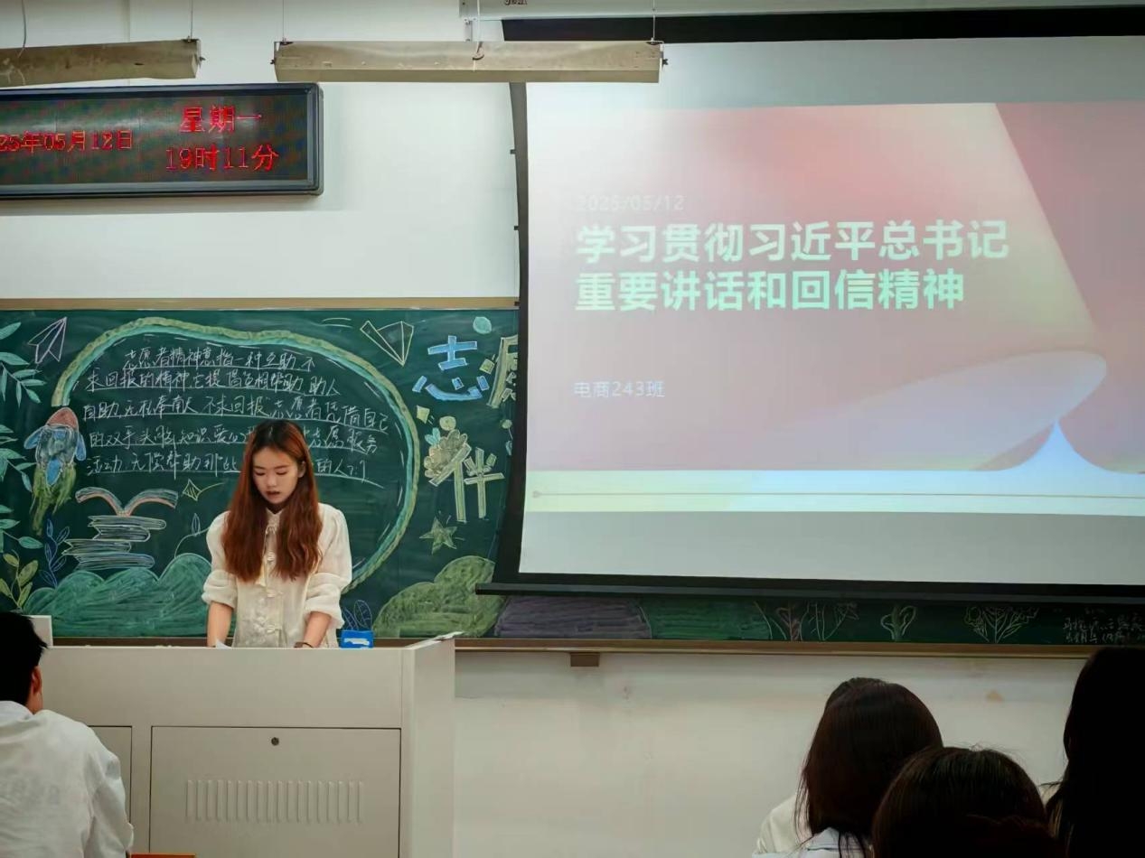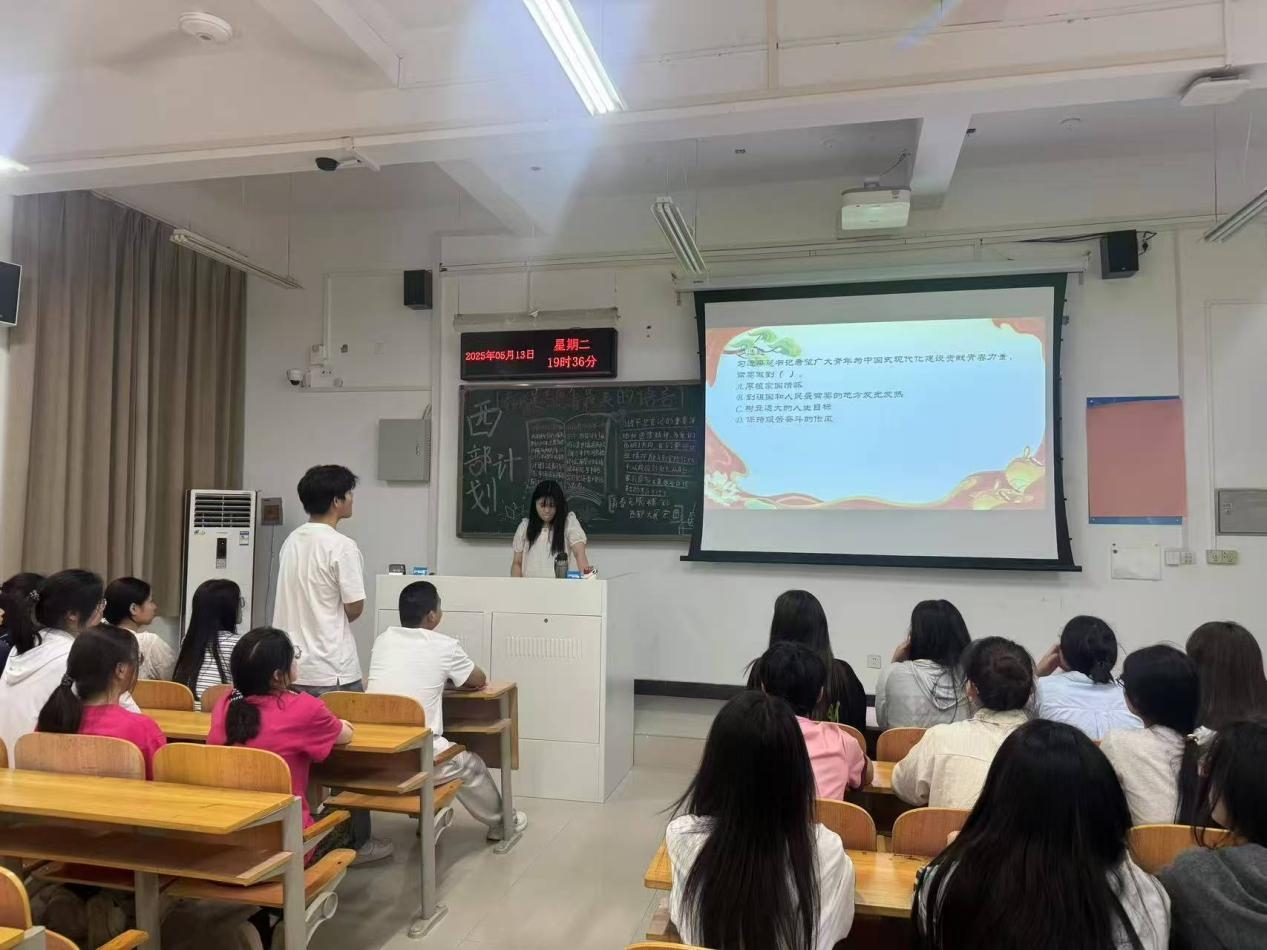 为进一步激励广大青年坚定理想信念,勇担时代使命,为中国式现代化建设贡献青春力量,5月12日—16日,www.男人天堂2024级各班以团课的形式,学习习近平总书记给谢依特小学戍边支教西部计划志愿者重要回信精神主题团日活动。