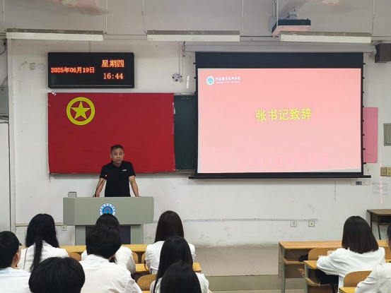 最后,团总支书记张文龙致辞,向新团员们表示热烈的祝贺,并对全体团员提出殷切期望。他强调,共青团员是党的助手和后备军,希望同学们坚定理想信念,树立远大抱负,将个人理想与国家发展紧密结合;刻苦学习专业知识,提升自身综合素质,为将来投身社会建设打下坚实基础;积极践行社会主义核心价值观,弘扬共青团的优良传统,展现新时代青年的良好风貌。