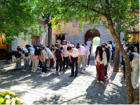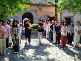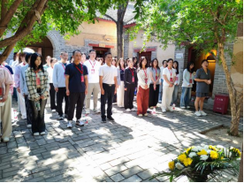 活动第一站是河南(豫西)抗日根据地纪念馆,在纪念馆,全体师生通过敬献花篮、集体宣誓、参观抗战遗址等环节开展沉浸式学习。在纪念馆讲解员的生动讲述中,师生们深入了解了豫西军民在极端艰苦条件下坚持抗战的感人事迹。革命先辈们迎难而上的拼搏精神令在场师生深受感动,这种精神力量为后续的创业训练活动注入了强大的精神动力。