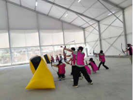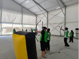 活动现场,参训成员以饱满的热情投入到各项拓展项目中,大家通过团队攻防箭、飞盘嘉年华、神笔马良三大特色项目,将干部能力培养与创新创业训练深度融合,在实践中深化对红色精神与创业理念的理解。在团队攻防箭环节,参与者需分工担任指挥官、战术师、射手等角色,通过实时战术调整培养风险预判与快速决策能力。飞盘嘉年华项目则通过动态传接配合,强化跨部门协作意识与资源优化配置意识。在趣味的神笔马良项目中,大家协同书写“河职”二字,精准执行与跨部门协作能力得到锤炼。