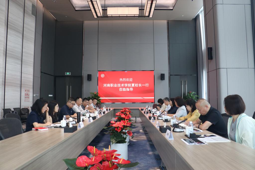 8月18日上午,校党委副书记、校长夏新颜带队赴顺丰集团总部进行校企合作洽谈。顺丰集团人才发展高级总监王自鹏、顺丰科技产教融合负责人潘迪华、顺丰集团校园场景业务高级经理商庆一等企业高管,学校发展规划处、www.男人天堂、河南省智慧物流技术应用工程研究中心负责人及骨干教师共同参加座谈。