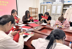 最后,大家以剪纸、绘画等手工创作形式,迎接伟大祖国母亲生日的到来。活动中,师生们以多样手工形式表达对祖国的祝福:部分同学精心选取谷物为材料,拼贴出 “天安门”“天坛” 等具有象征意义的建筑图案;另有同学以扇面为载体,用墨笔细致勾勒山河轮廓,再蘸取红黄颜料绘就鲜艳国旗,尽显山河壮丽与家国情怀;还有同学娴熟运用传统剪纸技艺,精准剪出党徽造型及“爱我中华”“欢度国庆”等主题字样,让传统工艺与爱国情感深度融合。每件作品均承载着创作者的真挚情感,不仅展现了动手实践能力,更成为传递爱国情怀、寄托对祖国美好祝愿的独特载体,让爱国精神在沉浸式创作中进一步浸润人心。