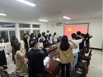 首先,全体成员起立,面向党旗庄严宣誓,表达对伟大祖国的无限热爱与赤诚忠心,立誓以坚定的理想信念筑牢精神之基,以矢志不渝的担当扛起时代重任,用实干践行初心,用奋斗守护祖国的山河锦绣与人民安康,为推动中华民族伟大复兴的壮阔事业拼搏奉献、矢志前行。随后,大家一起观看了爱国主义视频,通过展现不同时期基层共产党员服务群众的典型事迹与青年群体守护家国的担当实践,进一步激励了在场师生厚植家国情怀、践行初心使命的内生动力,也为青年学生树立了可感可学的榜样标杆,引导他们将个人理想融入民族复兴伟业,以“挺膺担当”的姿态扛起时代责任。