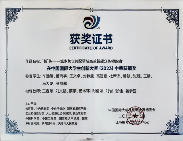 2020、2021、2022级学生在中国国际大学生创新大赛(2023)获铜奖